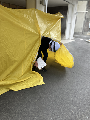 ・煙道体験: 視界が悪い中での避難ルート確保の練習