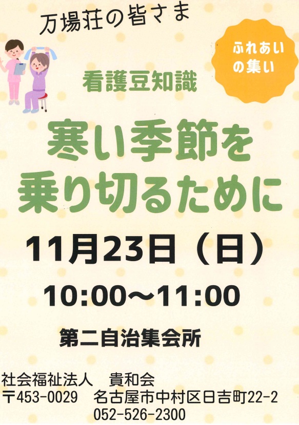 ”寒い季節を乗り切るために”を開催します。